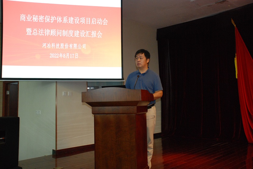 8月17日,河冶科技召開商業(yè)秘密保護(hù)體系建設(shè)項(xiàng)目啟動(dòng)會(huì)暨總法律顧問制度建設(shè)匯報(bào)會(huì)在河冶多功能廳召開。安泰科技總法律顧問、商密總代表王勁東,河冶科技總經(jīng)理米永旺,河冶高管團(tuán)隊(duì),安泰科技商密辦公室成員,河冶各部門商密代表及商密管理員參會(huì)。會(huì)議由河冶科技總法律顧問劉鵬杰主持。