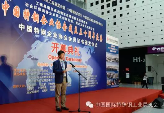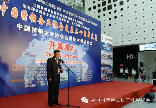 中國國際特殊鋼工業展覽會開幕式由九屆六次執行會長寶鋼特鋼總經理龐遠林主持,中國特鋼企業協會會長中信泰富特鋼集團董事長俞亞鵬致開幕詞,中國鋼鐵工業協會副會長王利群和中國鋼研科技集團副總經理田志凌致賀詞。參加開幕式剪彩的領導及嘉賓有:寶鋼特鋼有限公司總經理龐遠林、中信泰富特鋼集團董事長俞亞鵬、西寧特殊鋼集團有限責任公司董事長、黨委書記楊忠、中國鋼鐵工業協會副會長王利群、中國鋼鐵工業協會副會長、冶金規劃研究院院長李新創、中國鋼研科技集團有限公司副總經理田志凌、中信泰富特鋼集團總裁錢剛、東北特殊鋼集團有限責任公司總工程師董學東、太原鋼鐵(集團)有限公司副總柴志勇、舞陽鋼鐵有限責任公司董事長鄧建軍、天津鋼管集團有限公司副總工程師楊在安、中國特鋼企業協會不銹鋼分會常務副會長劉復興、河鋼集團石鋼公司總工程師齊建軍等。開幕式后全體參觀了展覽會。